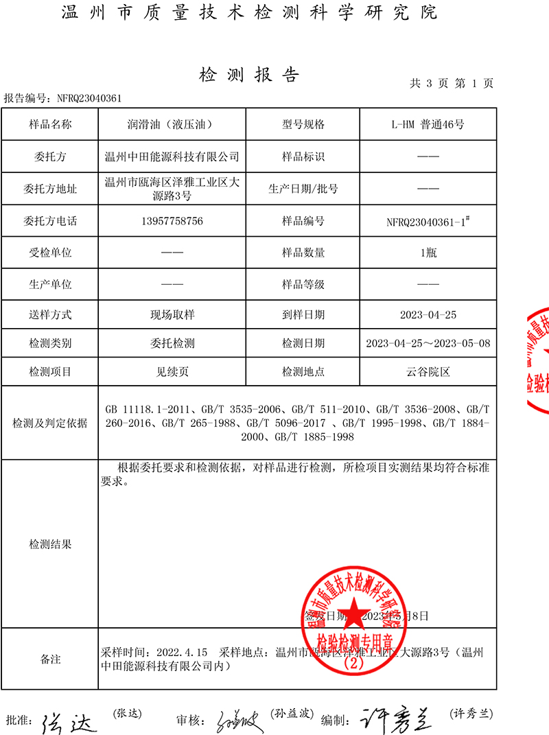 您當(dāng)前的位置:首頁(yè) / 新聞動(dòng)態(tài) / 潤(rùn)滑油(液壓油)檢測(cè)報(bào)告